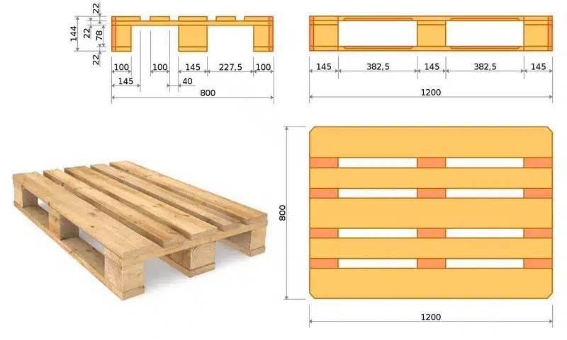 Như chúng ta biêt thì pallet EURO ( theo tiêu chuẩn của Châu Âu) còn được gọi khác là CEN pallet, pallet ứng dụng rộng rãi trong các ngành công nghiệp khác nhau. Kích thước phổ biến là 800 x 1200 x144 mm.
